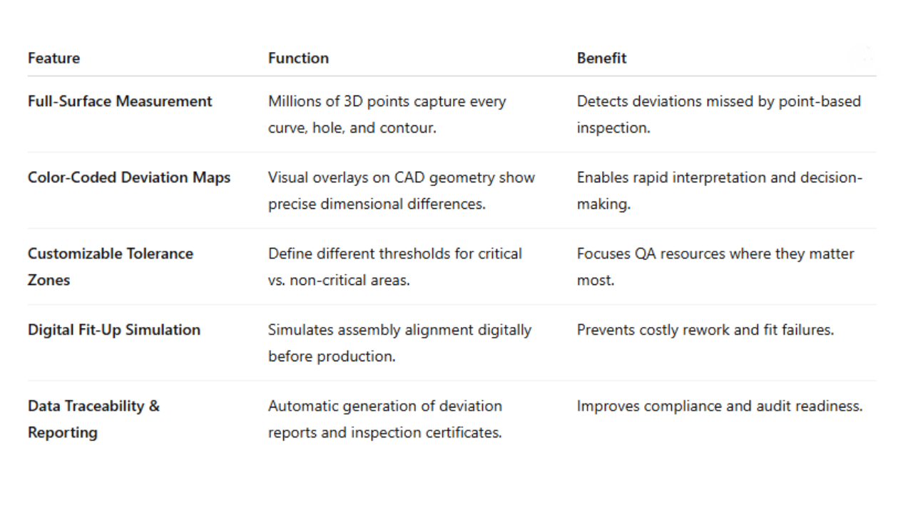 3D deviation reports serve as verifiable quality records, critical in aerospace, energy, and defense sectors.