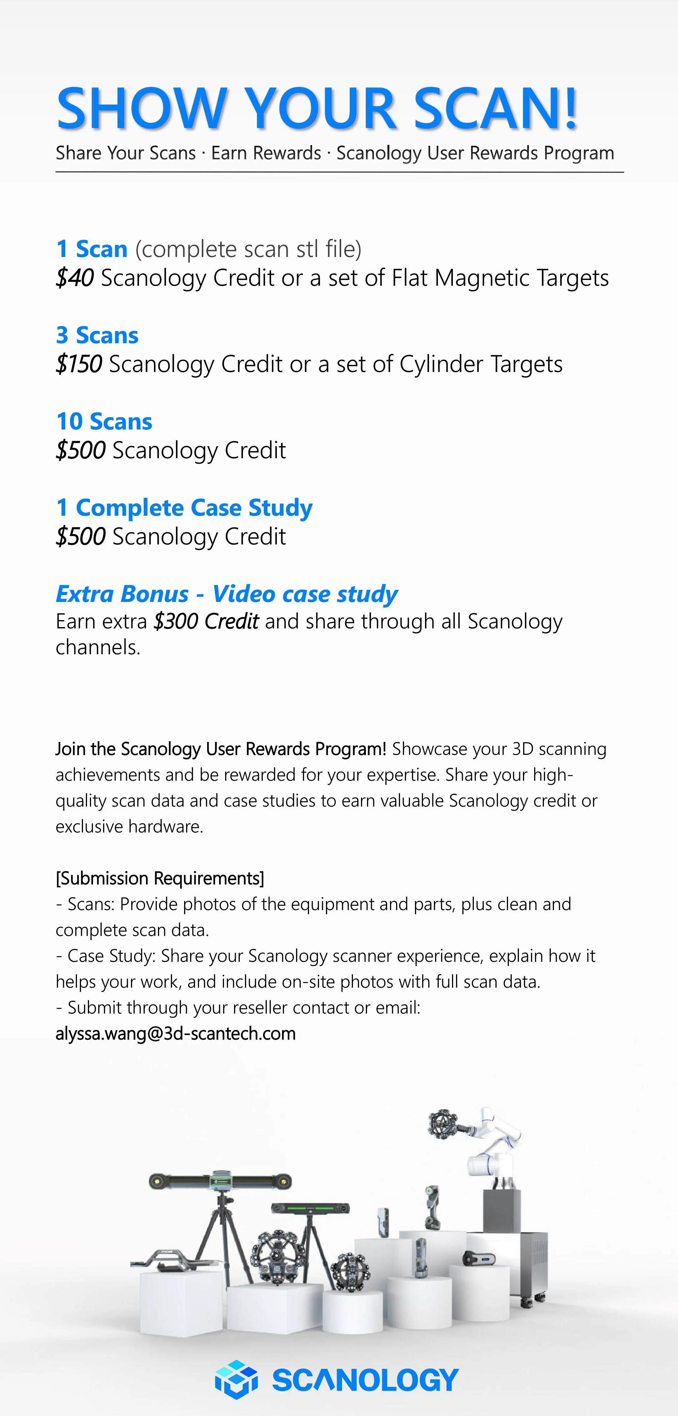 Join the Scanology User Rewards Program! Showcase your 3D scanning achievements and get rewarded! Share your high quality scan data and case studies to earn valuable Scanology Credit or Exclusive Hardware!